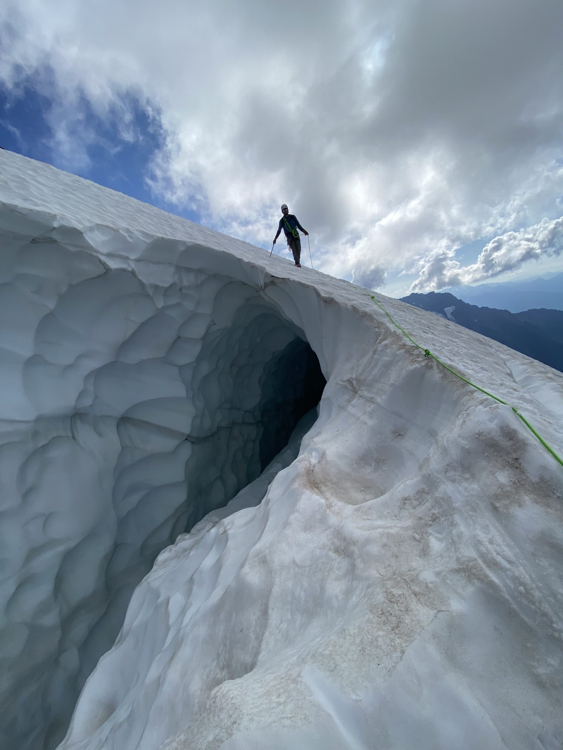 Join us for our One-Day Crevasse Rescue Course, designed to give climbers and skiers the essential skills the need to travel safely on glaciers. This intensive seminar focuses on practical techniques for rigging the rope for glacier travel as well as hauling systems, self-rescue, and partner rescue, with plenty of hands-on practice in realistic scenarios. Whether you’re preparing for a glacier climb in the Cascades, an expedition to Alaska, or ski mountaineering in the Alps, this course provides the confidence and competence you need to manage crevasse hazards effectively.