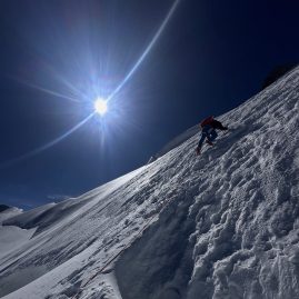 Day 3: Depending on the conditions and skill level, we will review crevasse rescue or attempt our first objective, Mt. Challenger, traversing the Whatcom and Challenger Glaciers, ascending a 5.7 rock pitch to the summit.